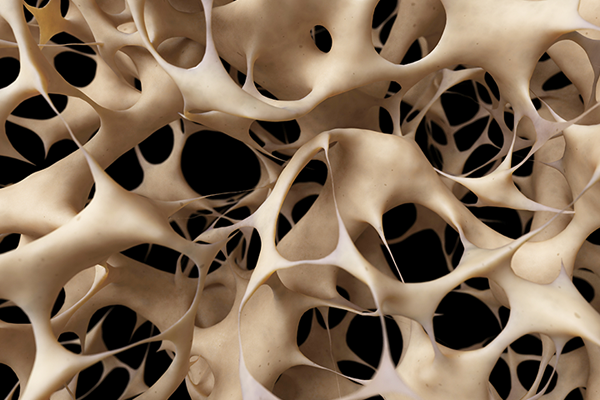 In osteoporosis, the loss of bone mass makes bones so porous and weakened that they become deformed and prone to fracture. In both men and women, bone mass starts to decrease at about the age of 40, and continually decreases from then on. Once women reach menopause, the decreased production of oestrogen can lead to osteoporosis.